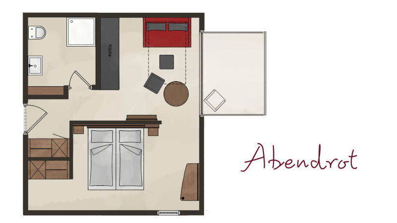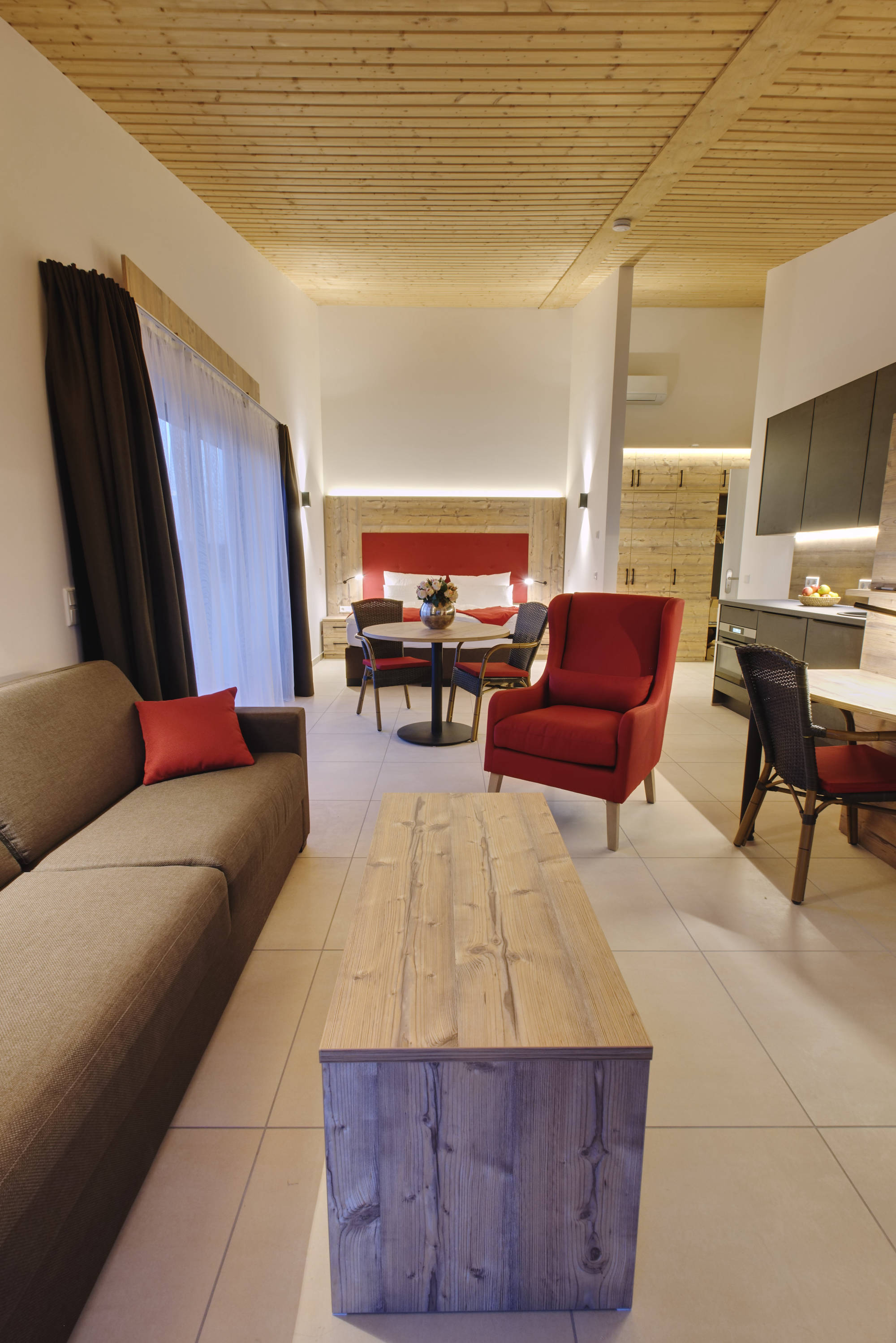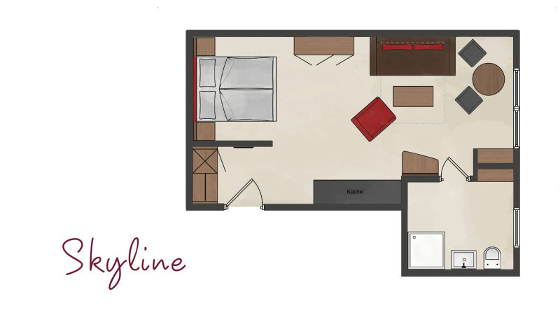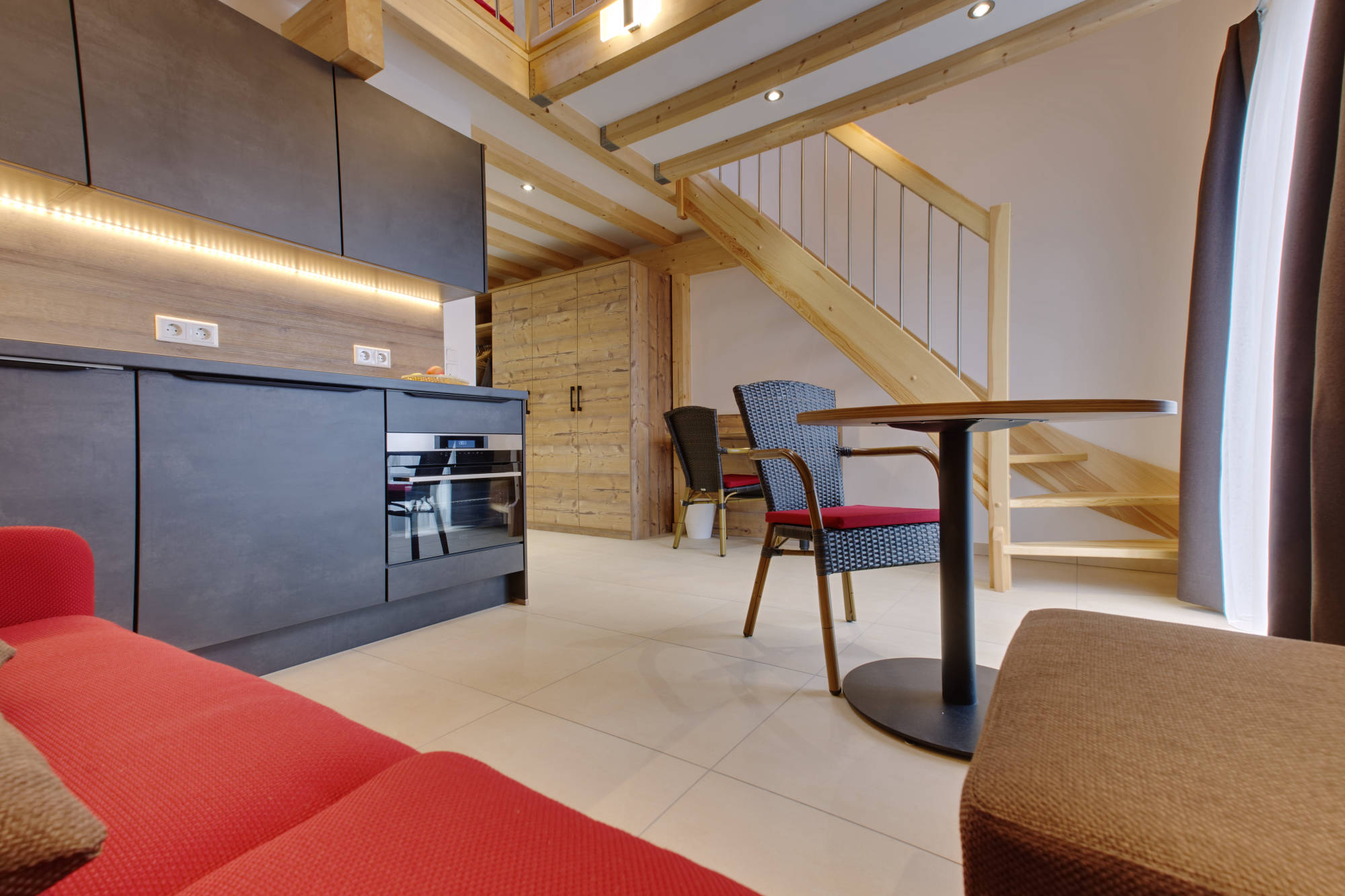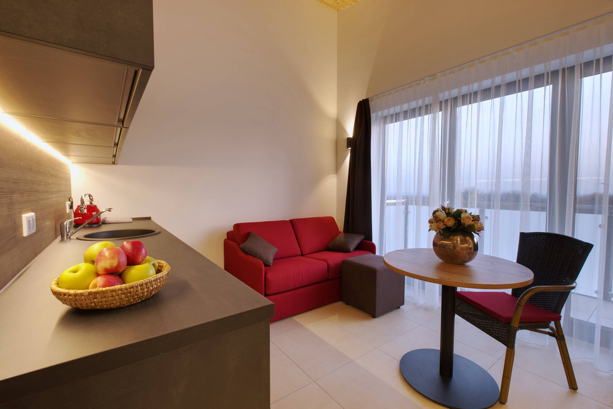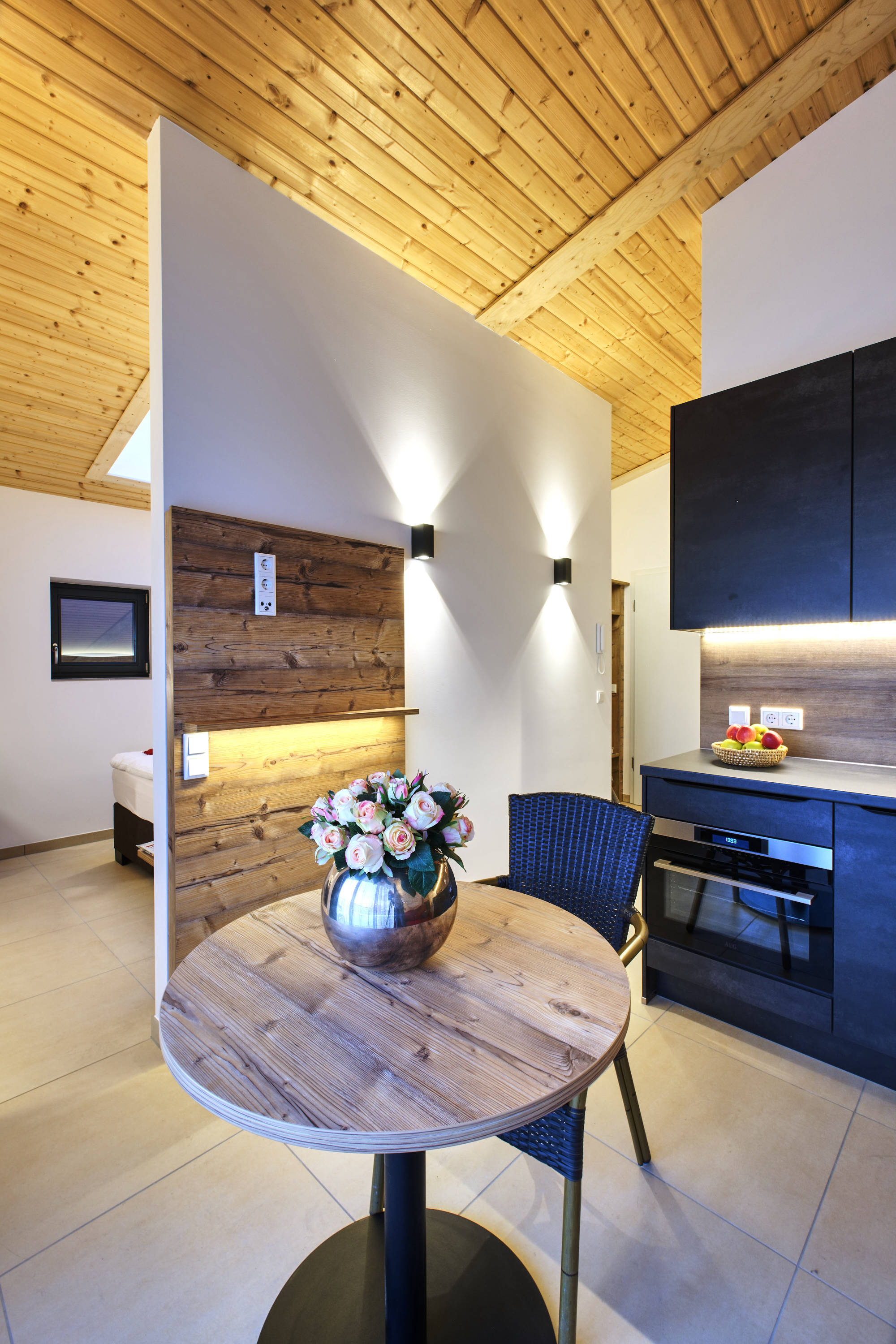 Jede Wohnung verfügt über gemütliche Boxspringbetten und ein Schlafsofa, eine moderne, voll ausgestattete, im Wohnraum integrierte Küche mit Spülmaschine, Kühlschrank und Backofen, ein geräumiges helles Tageslichtbad, Garderobe, Einbauschränke mit Safe, Arbeitsplatz und Esstisch.
